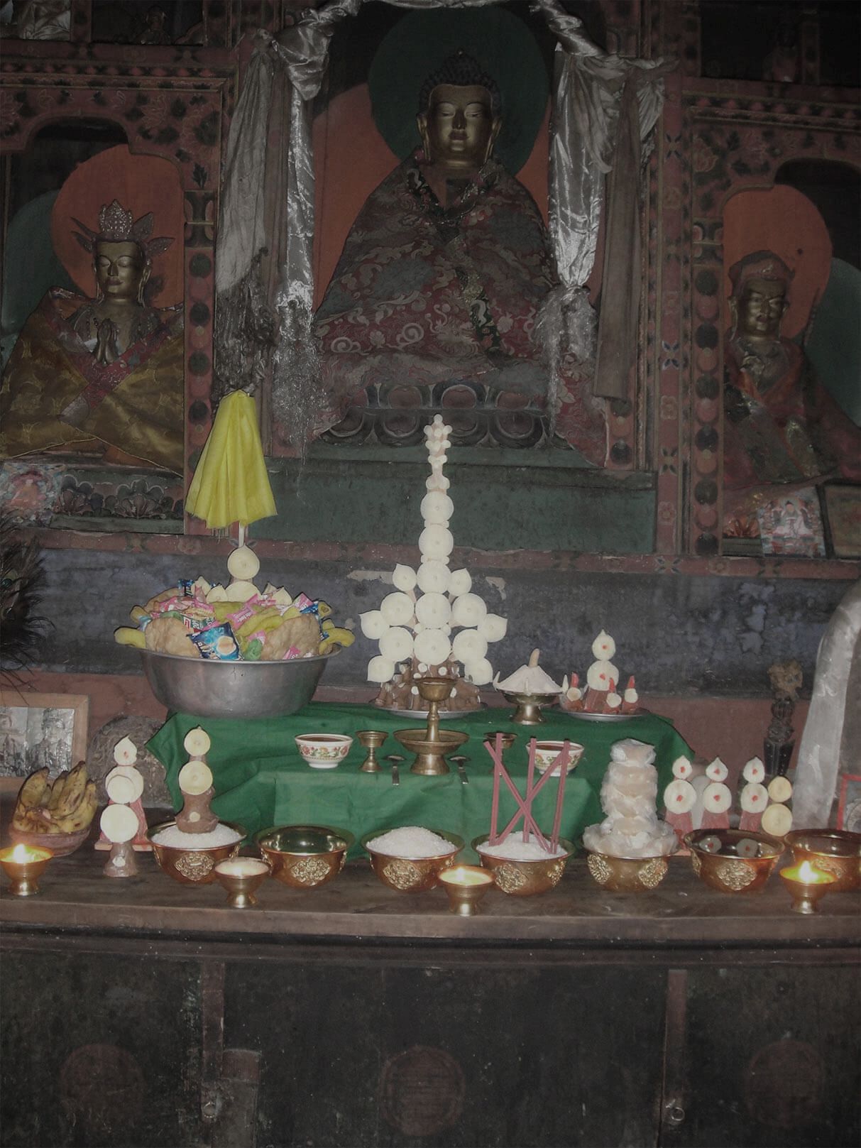 The three statues of the temple built by KhenpoNima’s great-grandfather were sent by the 1st King of Bhutan.