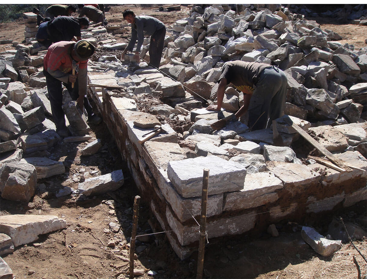 The preparing of the stones and woods for building the temple. The process of the Beginning construction.
