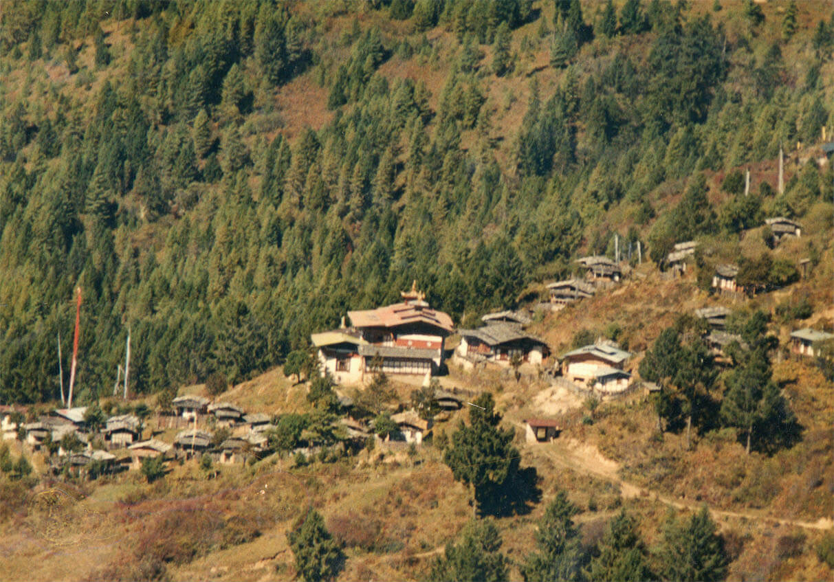 The photo taken when we welcomed Khenchen Jigme Phuntsok arriving at “Chimey” in Bhutan by a sedan chair and observing the place where the termas might be gotten.