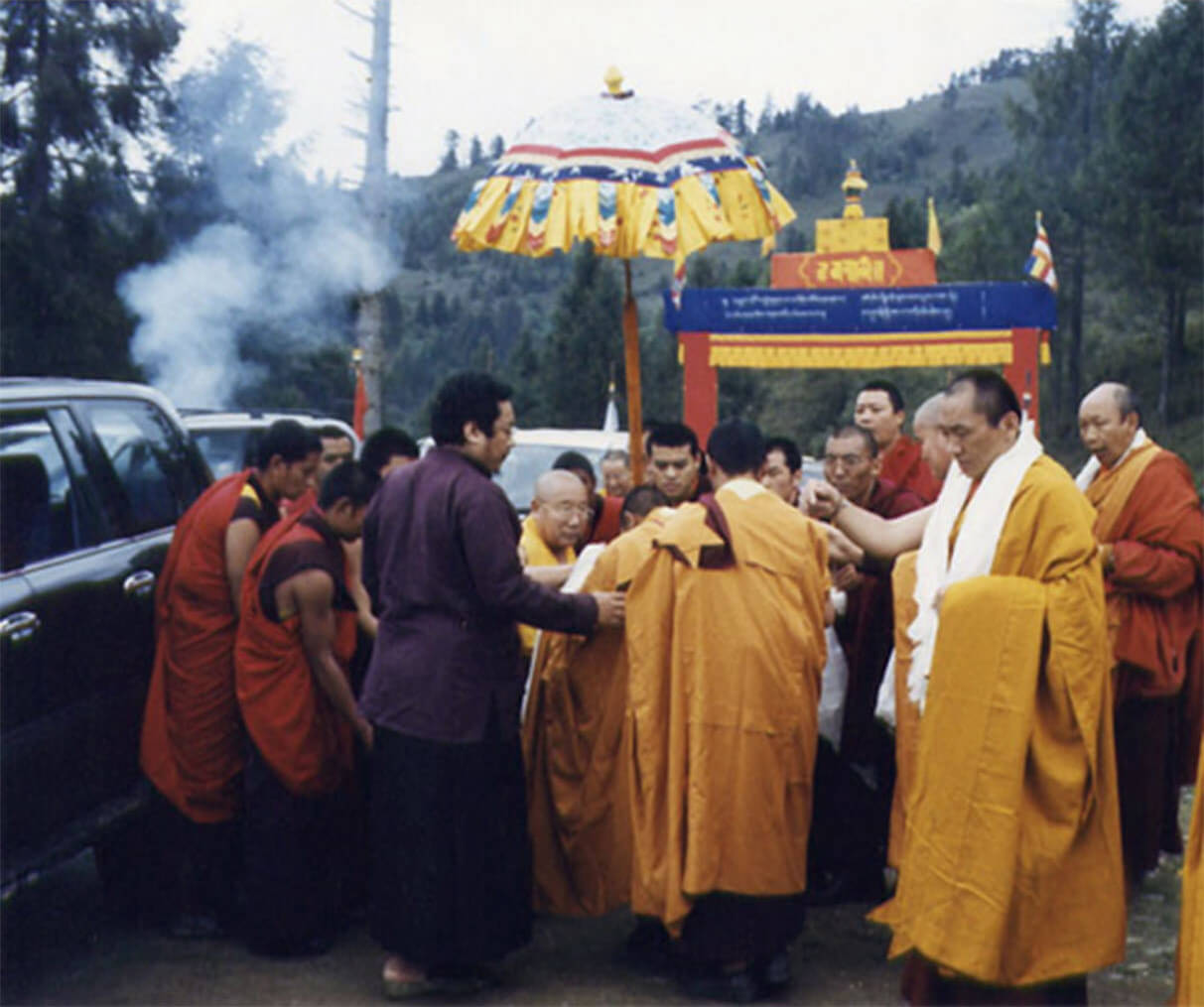 Khenchen Jigme Phuntsok arrived at Bhutan according to the bestowal of predictions, and devoted himself to developing the teachings and taking care of all beings’ happiness. At the time, he was supported with Khenchen Namdrol’s and my hands.