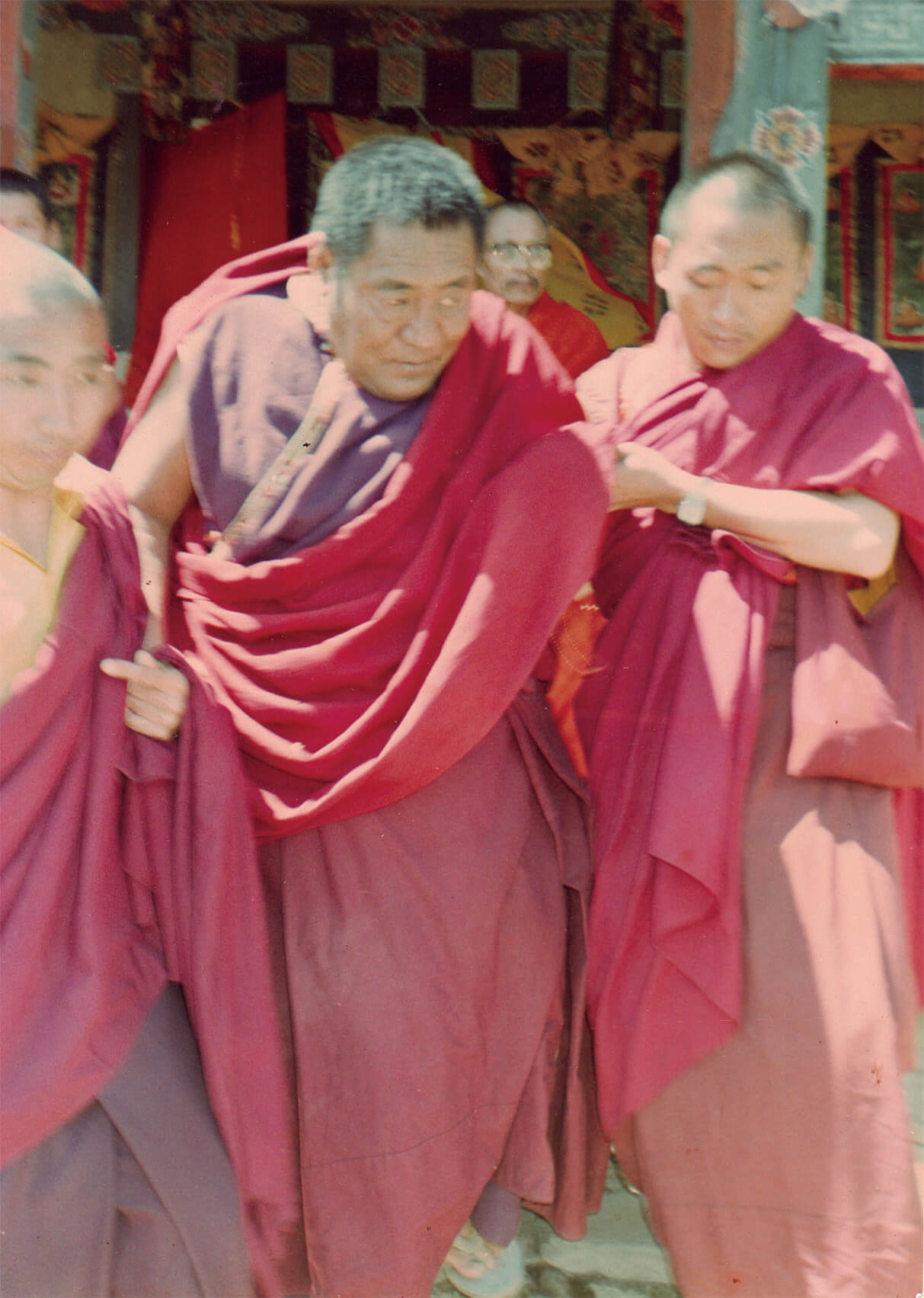 The photo was taken when Nima was the Khenpo in the college of the Tharpaling Monastery.