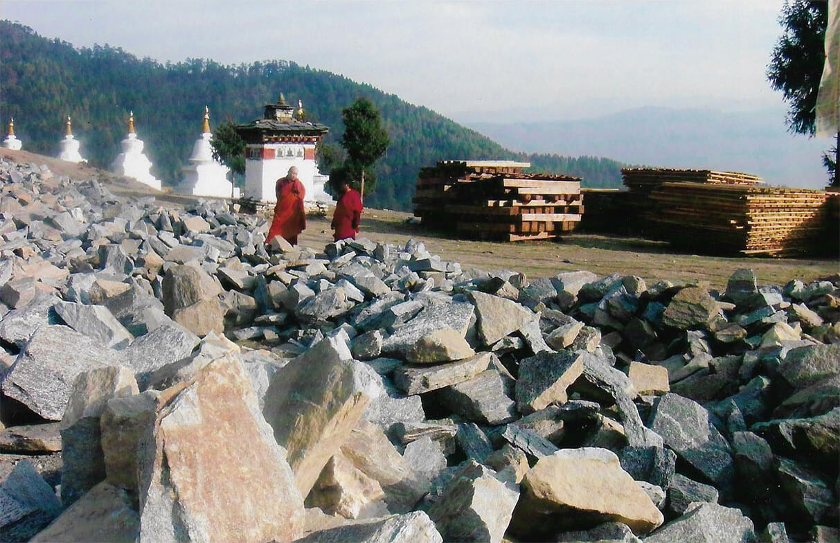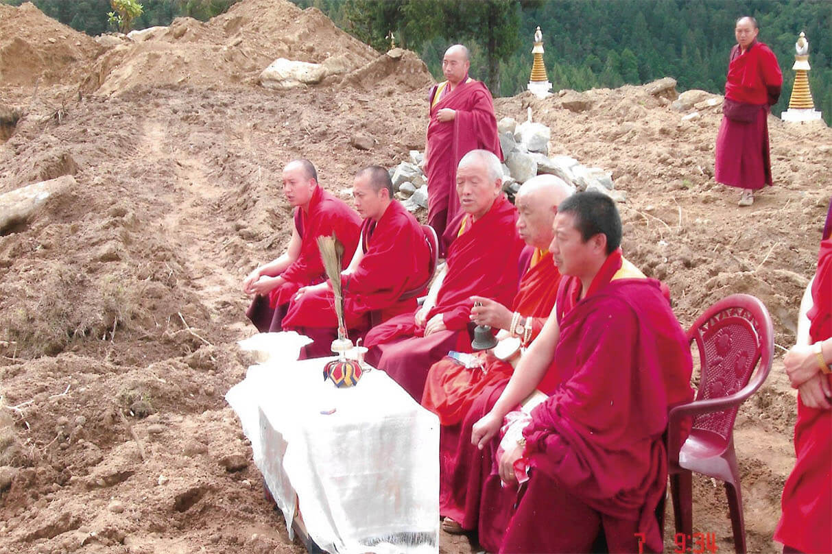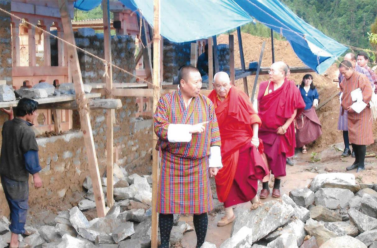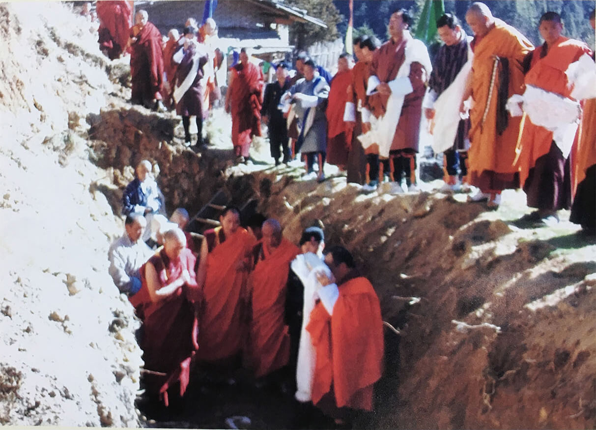 The Prime Minister of Bhutan was setting the stones of the eight auspicious signs.