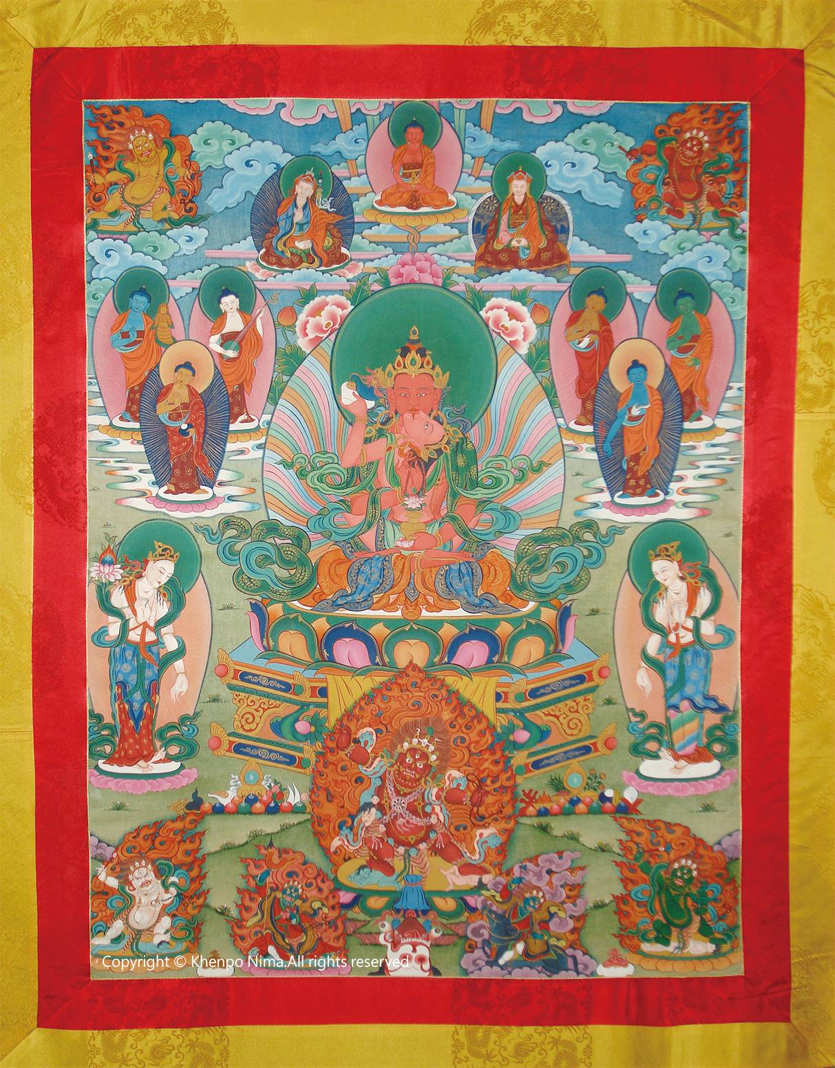 Khenpo Nima painted it(with the size:300cm×130cm) in Taras’temple in the Namdroling Monastery.