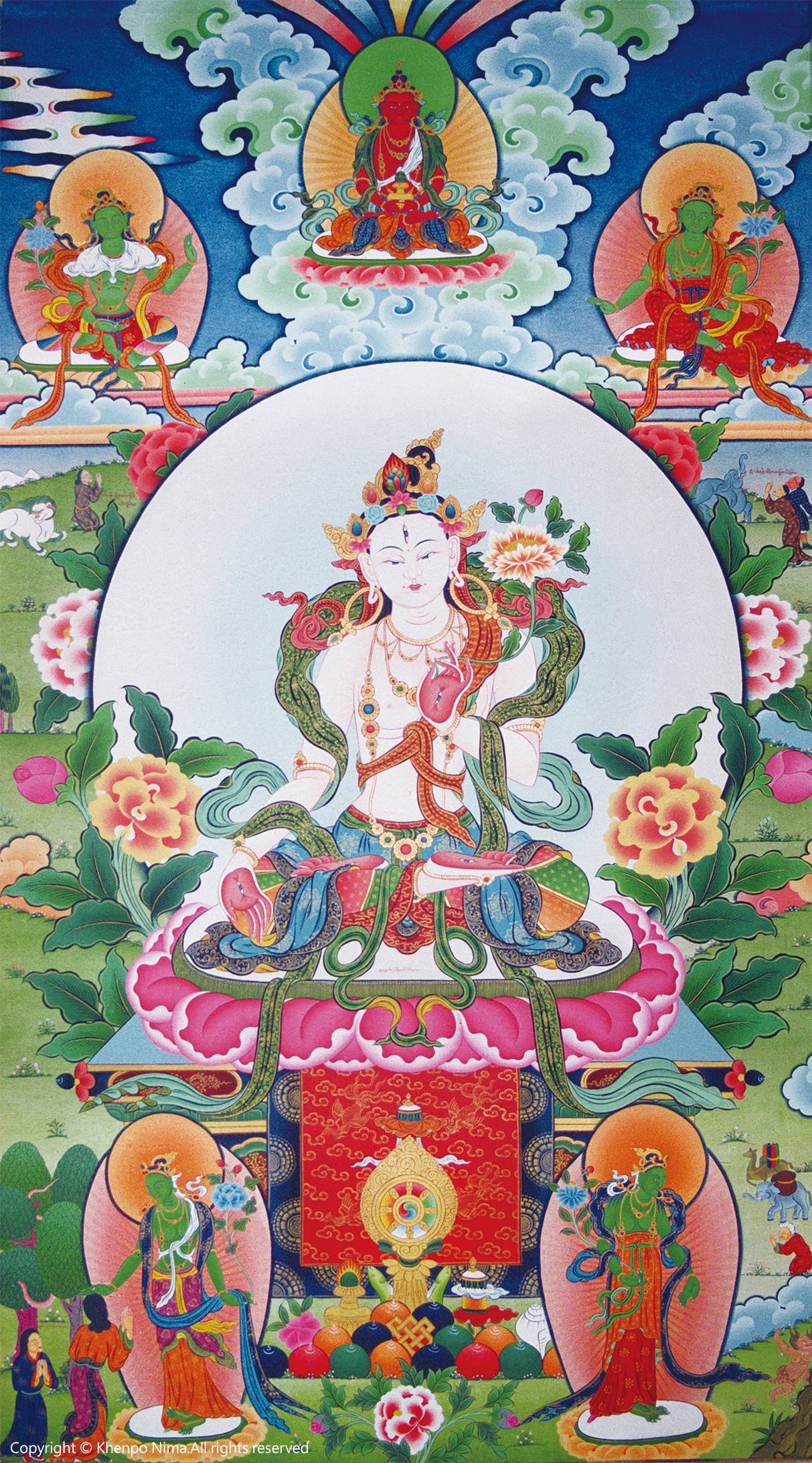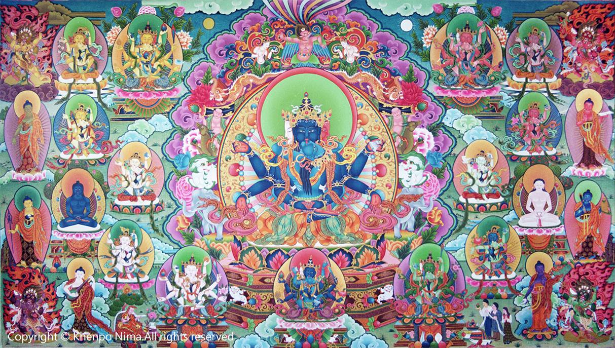 Khenpo Nima painted it (with the size:300cm×750cm) in Taras’ temple in the Namdroling Monastery.