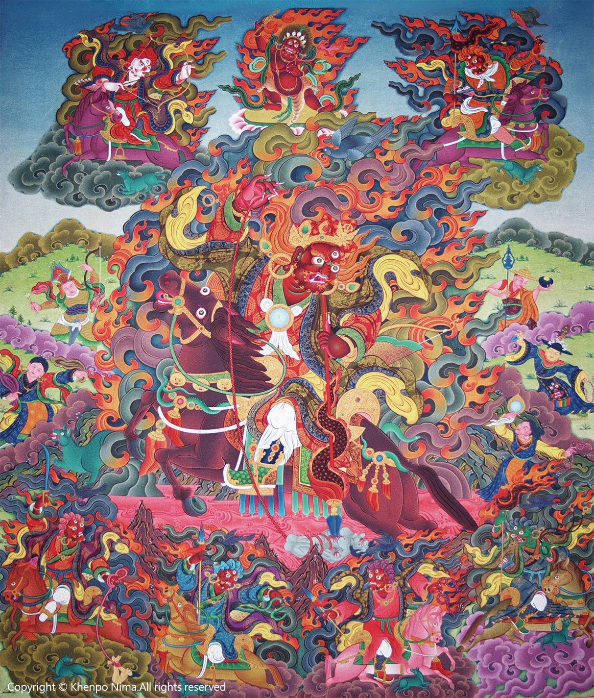 Khenpo Nima painted it (with the size:300cm×450cm) in the Namdroling Monastery.