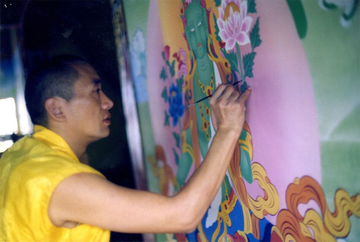 在南卓林寺度母殿內繪製至尊度母時所攝